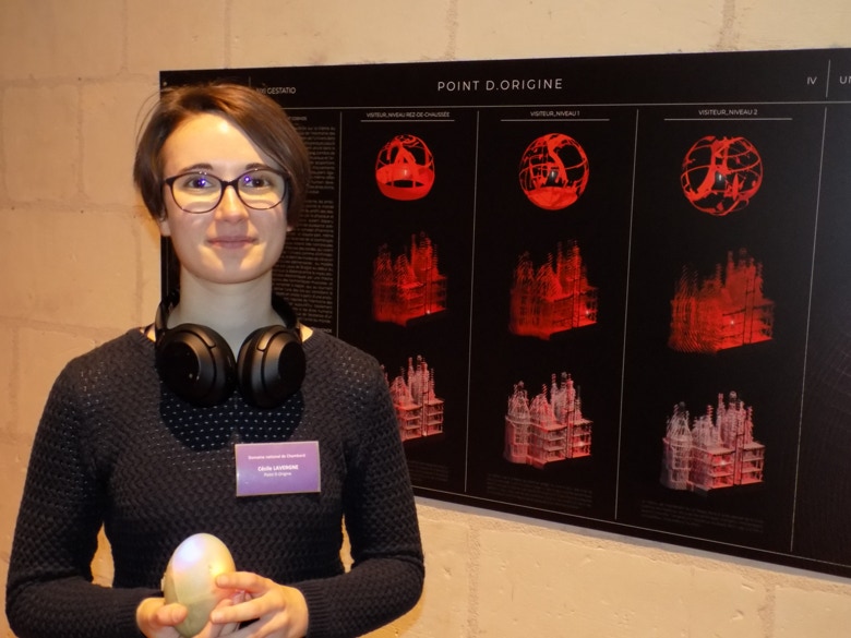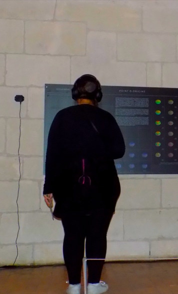 L’installation POINT D.ORIGINE est très simple d’utilisation et peut être expérimentée par les gens de tous les âges, des enfants en âge de marcher aux aînés. Pour celles ceux qui souhaitent en savoir plus sur le processus de transposition de l’architecture en musique, et sur ces fascinants objets mathématiques que sont les harmoniques sphériques, une exposition située au 2e étage du château dans la même salle que le poste d’accueil présente des panneaux explicatifs et de petites sculptures qui évoquent les différentes étapes de cette transposition.
